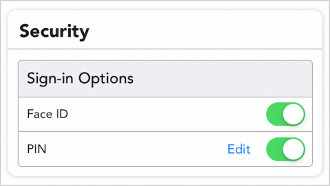 - In the Sign-in Options field, toggle the switch for Touch ID to Enabled. If your device supports Face ID, toggling this switch to Enabled will activate that function.